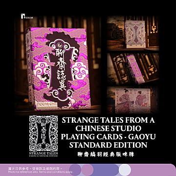 聊齋縞⽻經典版啤牌牌盒以現代手法致敬古代印刷與文學工藝,設計靈感源自蒲松齡時代的纖巧紙本與傳統線裝書美學,細膩呈現當年承載經典故事的匠心工藝。整套牌包含55張全定制牌面,融合文化底蘊與精致當代設計,極具收藏與鑑賞價值。