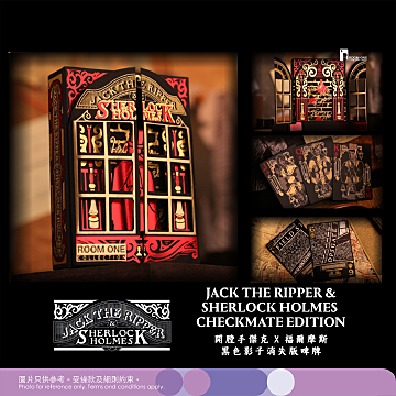 一個關於開膛手傑克和福爾摩斯故事解謎啤牌,限量2500副,黑色影子消失版揭開神秘面紗。閉合時,「開膛手傑克」的詭影若隱若現;開盒瞬間,魅影驟然消失,僅遺下懾人標記。牌盒綴以奢華燙金與細膩壓紋,於驚慄與優雅之間取得完美平衡。