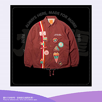 同樣以第3代的香港7-Eleven制服為藍圖,深紅色工裝長袖外套,配襯獨家7-Eleven 刺繡章,外套背面印有1981年首間7-Eleven在香港幕時的宣傳標語,獨特洗水效果復刻古著風味,為整體設計注入細節與質感。