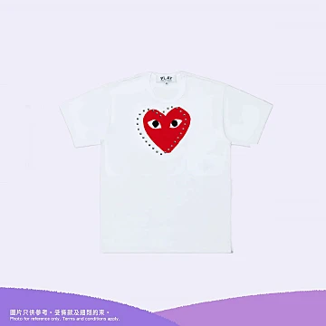 Play COMME des GARCONS 推出 Red Heart X Studs T 恤,飾有該品牌的標誌性心形印花,並飾有铆釘,盡顯迷人魅力。這款T恤採用經典的圓領設計,短袖和無拘無束的版型,毫不費力地將風格和舒適融為一體。