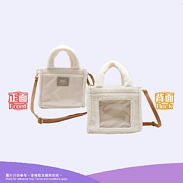 採用毛絨布料,可容納兩隻12cm的玩偶。 附肩帶,可以斜背。