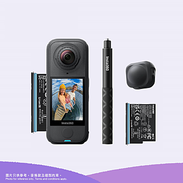 入門套裝包含:1x Insta360 X4 Air、1x 額外電池、1x 114 cm 隱形自拍棒及1x 鏡頭保護套。