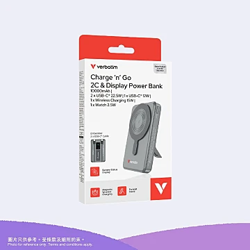 Verbatim 五合一 Charge 'n' Go 10000 磁吸無線行動電源|灰色|32272