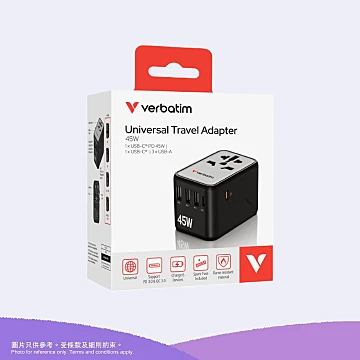 Verbatim 5 端口45W 通用旅行轉插 (UTA-08)|黑色|32123