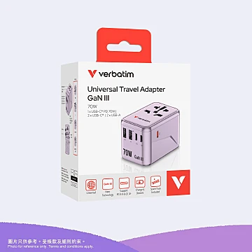 Verbatim GaN III 70W 通用旅行轉插 (UTA-09)|紫色|30170